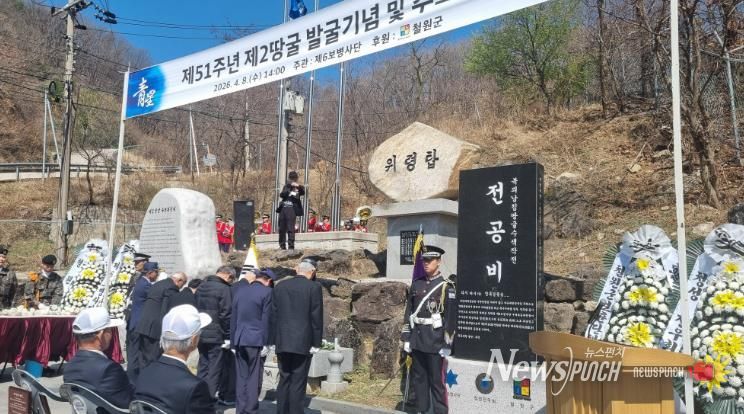 뉴스펀치 조평훈 기자 | 지난 8일 제2땅굴 위령비 앞에서 육군 6보병사단이 주관하고 철원군이 후원하는 제2땅굴 발견 51주년 기념·추모행사가 열렸다.