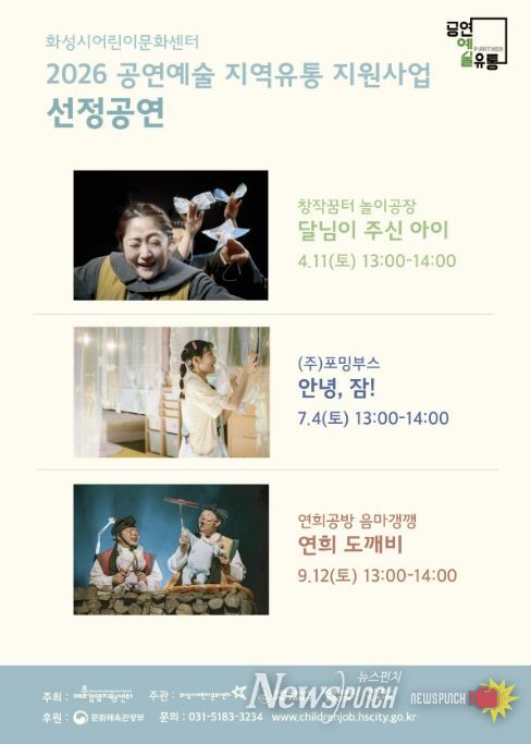 뉴스펀치 박상훈 기자 | 화성시어린이문화센터가 ‘2026 공연예술 지역유통 지원사업’에 선정돼 어린이를 위한 공연 3편을 선보인다.