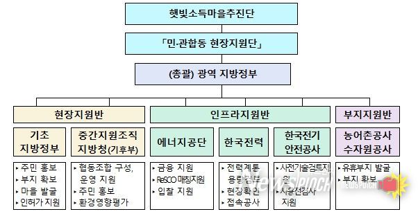 이번에 출범한'민·관합동 현장지원단'은 마을이 새로운 소득원을 만들고 공동체 기반을 강화하는 한편, 에너지 자립도를 높일 수 있도록 현장에서 사업 신청부터 완료 시까지 모든 과정을 현장에서 직접 돕는다.