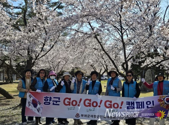 뉴스펀치 이현승 기자 | 부여군재향군인회여성회(회장 강일례)는 부여구드래조각공원 일원에서 회원 10명이 참석한 가운데 봄맞이 향군 캠페인 ‘봄날과 함께 GO! GO! GO!’를 진행했다고 10일 밝혔다.