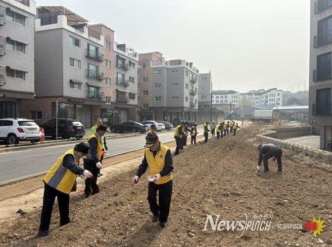 뉴스펀치 박상훈 기자 | 파주시 운정4동 실버경찰대가 행정복지센터 주변 일대에 잡풀로 방치돼 있던 장소를 정비하여 아름다운 꽃밭으로 탈바꿈시키기 위해 꽃씨 뿌리기 작업을 완료했다.