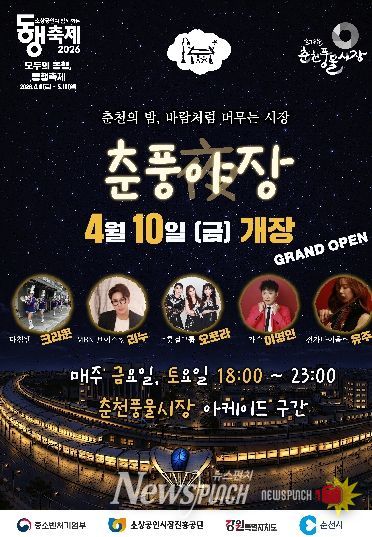 현준태 춘천시 부시장은 "지난해 큰 사랑을 받았던 춘풍야장이 올해는 더욱 풍성해진 콘텐츠와 쾌적한 환경으로 시민과 관광객을 맞이하게 됐다"며 "춘풍야장이 춘천의 밤을 대표하는 문화 관광 브랜드이자 지역 상권과 경제를 살리는 든든한 동력으로 확고히 자리매김할 수 있도록 적극 지원하겠다"고 밝혔다.