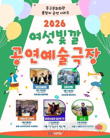뉴스펀치 정홍균 기자 | (재)인천중구문화재단(이사장 김정헌)은 시민과 함께하는 중구문화회관 봄맞이 공연 시리즈 ‘2026 여섯빛깔 공연예술극장’을 오는 4월부터 5월까지 총 5회에 걸쳐 선보인다고 밝혔다.