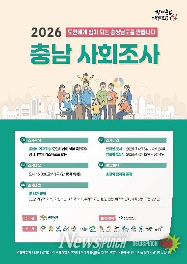 뉴스펀치 이현승 기자 | 논산시는 오는 4월 13일부터 5월 4일까지 관내 1,020가구의 만 15세 이상 가구주 및 가구원을 대상으로 ‘2026 충남사회조사’를 실시한다.