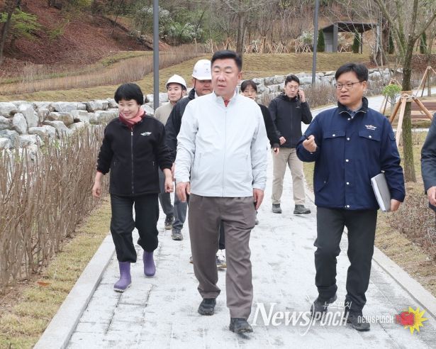 이 시장은 현장에서 사업 진행 상황을 보고받은 뒤 공원 내 야외무대 공간과 초화원 조성 현황 등을 꼼꼼히 살피며, 시민들이 편안하게 여가를 즐길 수 있는 공간으로 조성되고 있는지 세심히 점검했다.