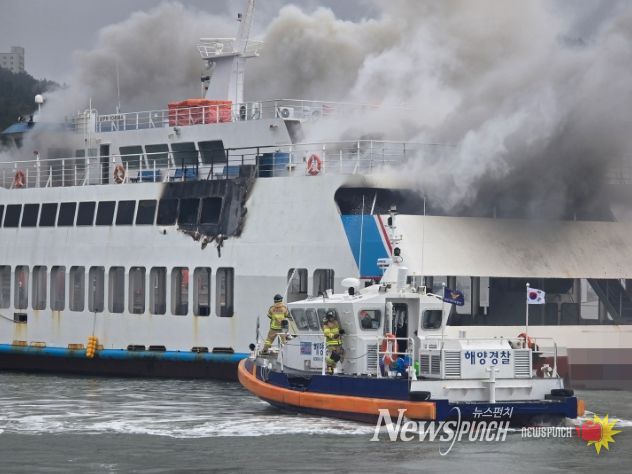 뉴스펀치 김용희 기자 | 완도해양경찰서는 10일 오전 7시 48분경 해남군 땅끝항에 정박 중이던 여객선 A호(621톤)에서 화재가 발생했다는 신고를 접수하고 경비함정과 구조세력을 신속히 투입해 화재를 진압했다.