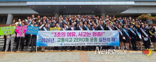뉴스펀치 박세훈 기자 | 경상남도는 10일 창원시외버스터미널 일대에서 경남버스운송사업조합, 경남자동차노동조합, 경남교통문화연수원, 한국교통안전공단 등과 함께 버스 안전운행 다짐대회 및 교통안전 합동 캠페인에 참석했다.