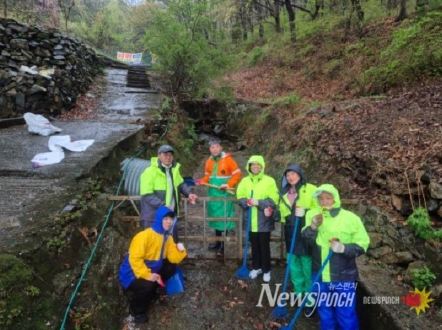 뉴스펀치 김윤걸 기자 | 부산 북구 만덕2동 행정복지센터(동장 이정임)는 지난 4월 호우 예비특보 발효에 대비해 만덕2동 지역자율방재단(단장 허환호)과 함께 토사유실 방지망 환경정비를 실시했다고 밝혔다.