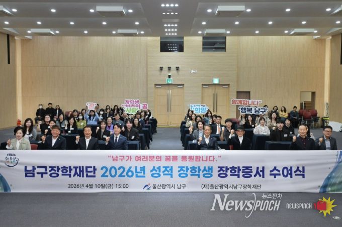 뉴스펀치 김윤걸 기자 | 울산 남구는 10일 남구청 대강당에서 2026년도 성적우수 장학생 장학증서 수여식을 개최했다.