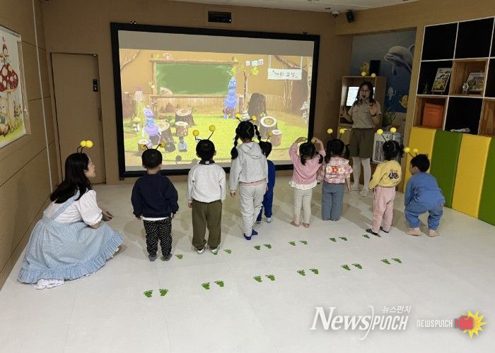 도서관 1층 체험형 동화구연실에서는 매 회차마다 동화 속 세상이 펼쳐지고, 아이들은 이야기를 ‘듣는 사람’이 아닌 ‘주인공’이 되어 그 안으로 들어간다. 대형 스크린에 구현된 생생한 장면 속에서 아이들은 몸을 움직이며 이야기의 흐름을 따라가고, 친구들과 함께 역할을 나누며 자연스럽게 이야기를 완성해 나간다.
