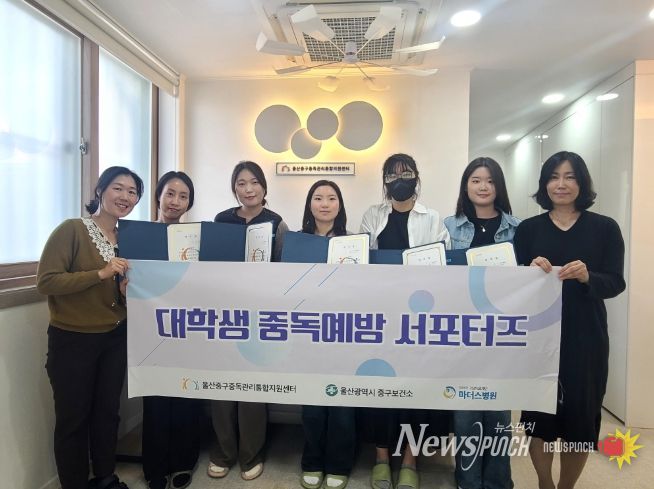 이날 울산중구중독관리통합지원센터는 제5기 중독예방 대학생 응원단(서포터스)으로 활동하게 된 지역 대학생 7명에게 임명장을 수여했다.