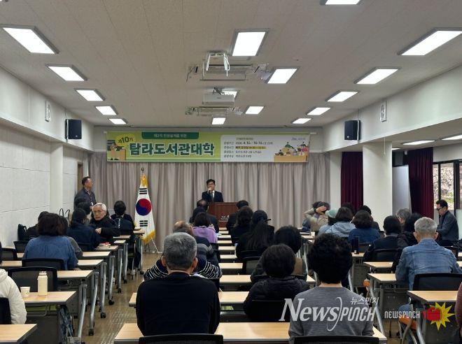 뉴스펀치 김용희 기자 | 현원돈 제주시 부시장은 4월 10일 탐라도서관에서 열린 ‘제10기 탐라도서관대학’개강식에 참석해 시민들의 평생교육에 대한 열정에 감사의 뜻을 전했다.
