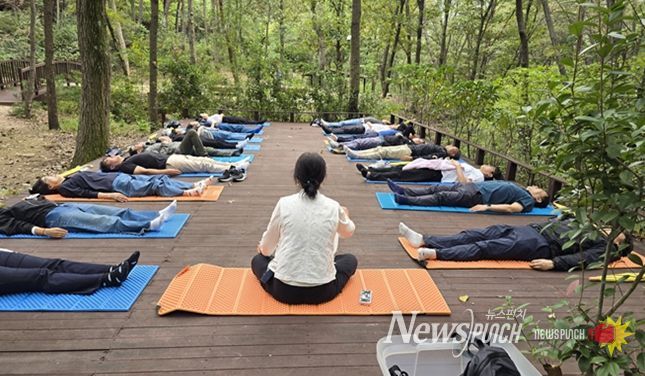 [부산 치유의 숲(기장군 철마면)] 인체의 면역력을 높이고 건강을 증진시키는 ▲임신부 가족의 숲태교 ‘마주보입시더(the)숲’ ▲어르신 건강 증진을 위한 ‘단디하입시더(the)숲’ ▲ 싱잉 볼 명상 등 산림치유 프로그램을 운영한다.