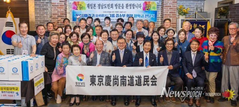 뉴스펀치 박세훈 기자 | 경상국립대학교(GNU·총장 권진회)는 4월 10일 오후 6시 재일 교포 가네시마간코그룹 김소부 회장의 장학금 전달식을 개최했다. 이번 행사는 김소부 회장이 재일동경경남도민회 회원 60여 명과 함께 고향인 경남을 방문하는 일정에 맞춰 마련됐다.