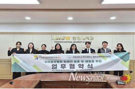 뉴스펀치 조평훈 기자 | 강원특별자치도와 강원디지털성범죄피해자지원센터는 디지털 성범죄가 없는 안전한 캠퍼스 조성을 위해 4월 10일 강원대학교 원주캠퍼스 원주교육학생지원과와 디지털성범죄 피해자 보호 및 지원 강화를 위한 업무협약(MOU)을 체결했다.
