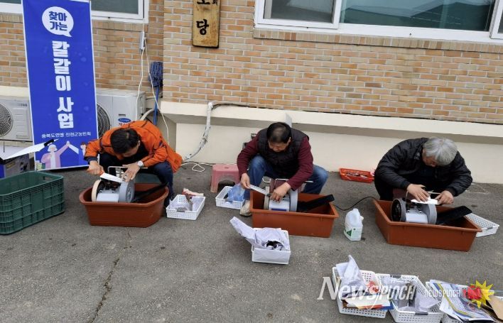 뉴스펀치 이현승 기자 | 충북 진천군농민회는 지역 주민들의 생활 편의를 돕기 위해 ‘찾아가는 무료 칼 갈아주기 행사’를 추진하고 있다고 13일 밝혔다.