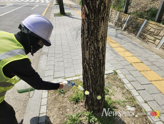 뉴스펀치 박상훈 기자 | 용인특례시 처인구는 은행나무 가로수에 친환경 결실 제어제를 주입해 열매 악취로 인한 문제를 해소한다고 13일 밝혔다.