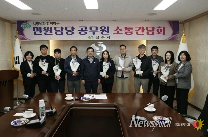 뉴스펀치 박세훈 기자 | 상주시는 4월 10일 시청 소회의실에서 2026년 1분기 민원처리 우수 공무원 시상식과 함께 민원담당공무원들과의 소통 간담회를 개최했다.