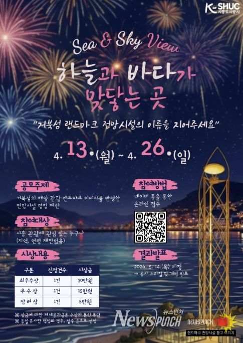 뉴스펀치 박상훈 기자 | 시흥도시공사는 오는 13일부터 26일까지 거북섬을 대표할 랜드마크 전망 시설의 이름을 시민과 함께 만들기 위해 ‘신규 관광시설 명칭 공모전’을 개최한다고 밝혔다. 이번 공모전은 거북섬의 해양관광 이미지를 담은 상징적인 명칭을 발굴하고, 시민 참여를 통해 지역의 새로운 관광 브랜드를 구축하기 위해 마련됐다.