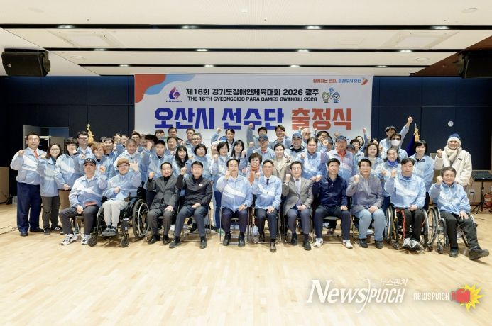 뉴스펀치 박상훈 기자 | 오산시장애인체육회는 ‘제16회 경기도장애인체육대회 2026 광주’에 참가하는 오산시 선수단 출정식을 지난 10일 오산오색문화체육센터에서 개최했다고 밝혔다.