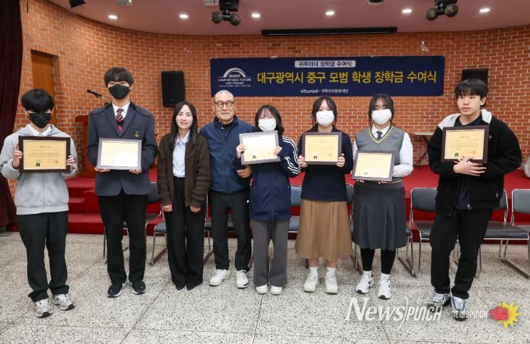 뉴스펀치 조평훈 기자 | 귀뚜라미문화재단은 지난 10일 대구 중구 남산기독교종합사회복지관에서 중구 지역 중·고등학생 및 대학생을 대상으로 장학금 5,000만원을 전달하며 따뜻한 응원의 뜻을 전했다.