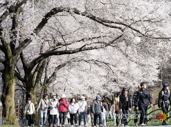 뉴스펀치 정홍균 기자 | ‘전국에서 가장 늦게 피는 벚꽃’이라고 불리는 진안 마이산 벚꽃이 만개했다.