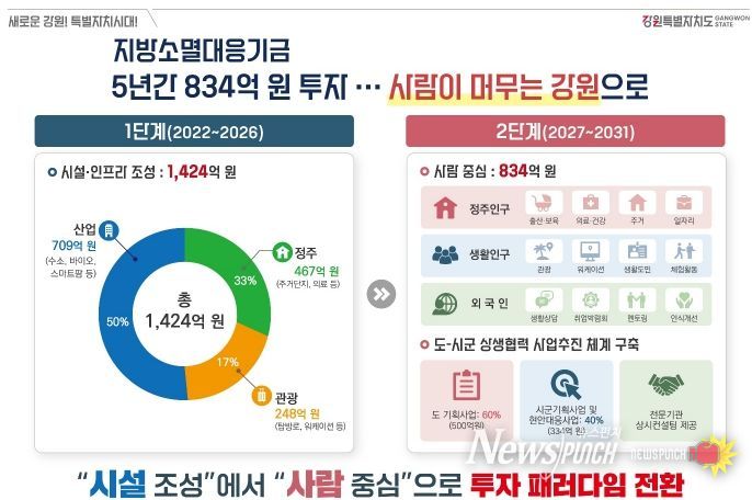 뉴스펀치 조평훈 기자 | 강원특별자치도가 지방소멸대응기금을 기존 ‘시설‧인프라 중심’에서 ‘사람 중심’ 투자로 전환해 2027년부터 2031년까지 총 834억 원을 투입한다고 밝혔다.