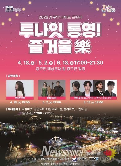 뉴스펀치 박세훈 기자 | 통영시는 오는 18일 강구안 해상무대 및 강구안 일원에서 '2026 강구안 나이트 프린지, 투나잇 통영 즐거울 樂'의 첫 공연을 개최한다.