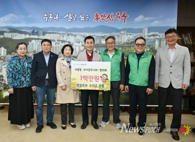 뉴스펀치 김윤걸 기자 | 울산 중구 다운동 새마을부녀회와 새마을협의회가 4월 13일 오후 15시 중구청 구청장실을 찾아 이웃돕기 후원금 100만 원을 전달했다.