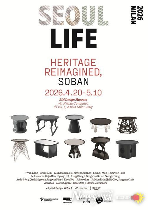 서울디자인재단은 2026년 4월 20일부터 5월 10일까지 이탈리아 ADI 디자인뮤지엄에서 국제 전시 'SEOUL LIFE 2026 MILAN: Heritage Reimagined, Soban'을 개최한다.