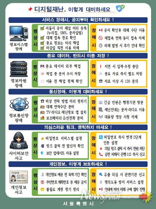서울시는 디지털재난 발생 시 시민이 즉시 활용할 수 있는 행동요령도 체계적으로 마련했다. 이는 장애 발생 시 정보 부족으로 혼란이 확대되는 문제를 줄이고, 시민 스스로 대응할 수 있도록 하기 위한 것이다.