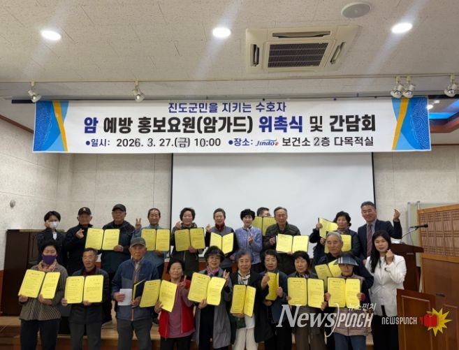 뉴스펀치 손석남 기자 | 진도군은 암 예방과 관리 역량을 강화하고 암 환자 관리 사업을 활성화하기 위해 홍보요원 위촉식을 개최했다.
