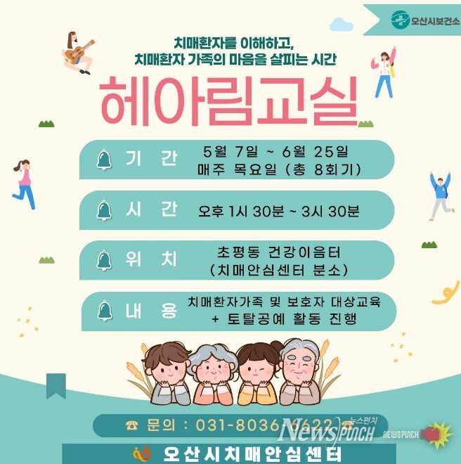 뉴스펀치 박상훈 기자 | 오산시치매안심센터는 치매 환자와 가족의 정서적 부담을 완화하고 돌봄 역량 강화를 지원하기 위해 치매 가족 대상 프로그램 '헤아림 교실' 2기 참여자를 모집한다고 밝혔다.