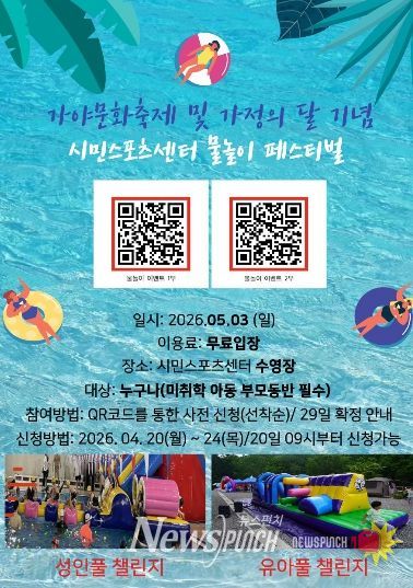 뉴스펀치 박세훈 기자 | 김해문화관광재단 시민스포츠센터는 오는 5월 3일, 김해시 대표 축제인 ‘가야문화축제’와 ‘가정의 달’을 기념하여 시민들을 위한 특별한 물놀이 이벤트를 개최한다고 밝혔다.