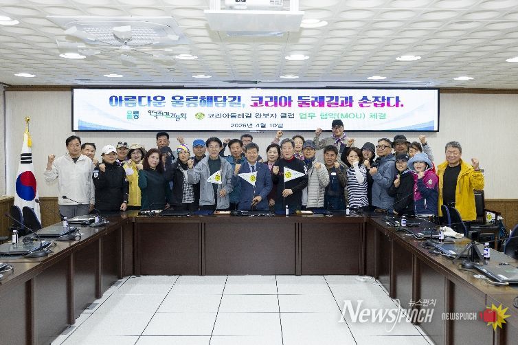 뉴스펀치 박세훈 기자 | 울릉군은 4월 10일 울릉군청 제2회의실에서 사단법인 ‘한국의 길과 문화’(이사장 홍성운) 및 코리아 둘레길 완보자 클럽(회장 서홍수)과 울릉군의 지속 가능한 관광 문화 확산을 위한 업무협약(MOU)을 체결했다.