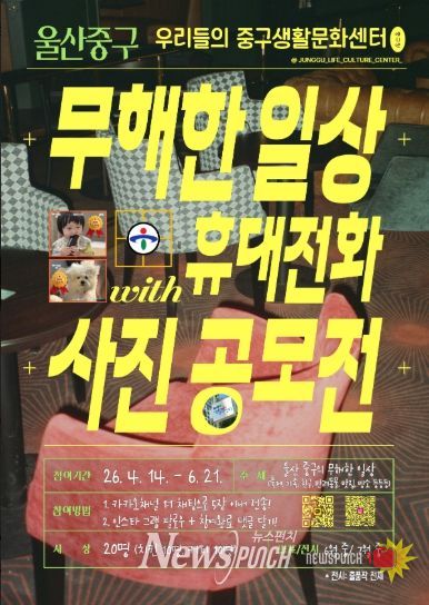 뉴스펀치 김윤걸 기자 | 울산 중구에서 운영하는 중구생활문화센터가 4월 14일부터 6월 21일까지 ‘2026 우리 동네 무해한 일상’ 휴대전화 사진 공모전을 개최한다.