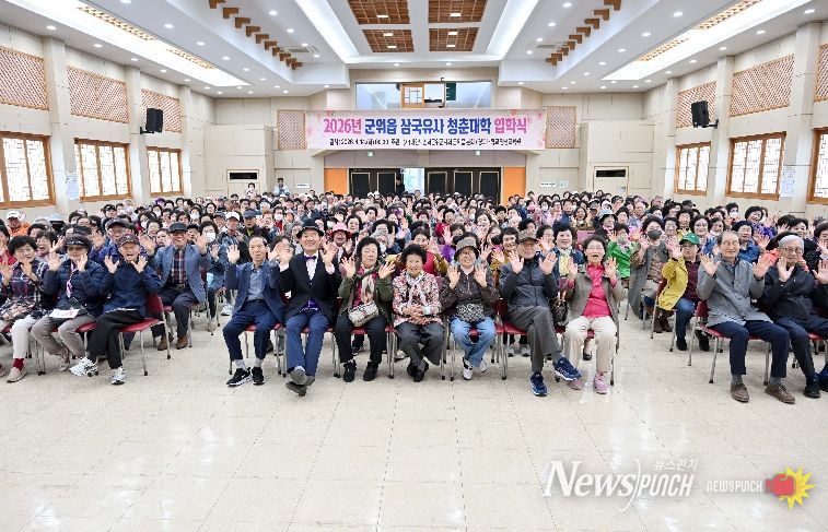 뉴스펀치 박세훈 기자 | 군위군은 14일 군위읍을 시작으로 이재성 군위군수 권한대행, 노인회 관계자, 학생 2,000여 명이 참석한 가운데 2026년 삼국유사 청춘대학 입학식을 성황리에 개최했다.