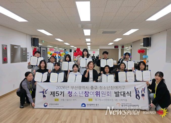 뉴스펀치 김윤걸 기자 | 부산 중구청소년문화의집은 지난 11일, 지역 청소년들의 권익 증진과 정책 참여를 이끌어갈 ‘제5기 청소년참여위원회’의 발대식을 개최하고 본격적인 활동을 시작했다고 밝혔다.