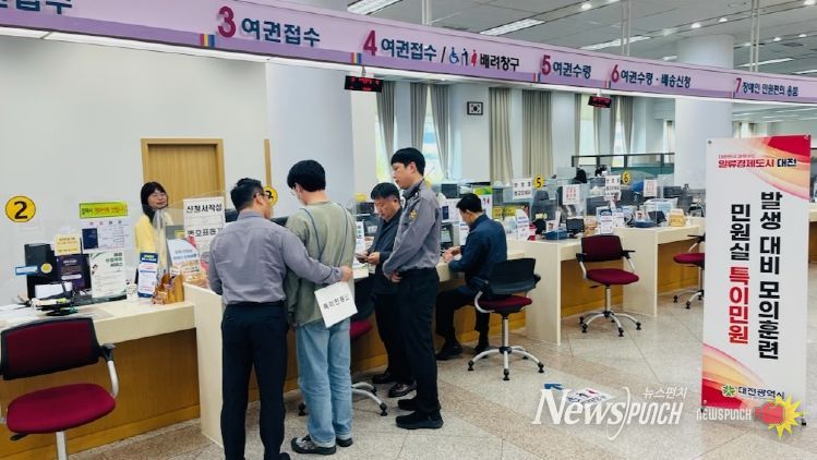 뉴스펀치 이현승 기자 | 대전시는 14일 시청 소통민원과 민원실에서 경찰과 합동으로 ‘특이민원 발생 대비 모의훈련’을 실시했다.