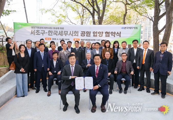 뉴스펀치 박상훈 기자 | 서울 서초구는 14일 명달가로공원에서 한국세무사회와 ‘명달가로공원(세무사길) 입양 협약식’을 열고, 공원 관리와 이용 활성화를 위한 민관 협력을 본격화한다고 밝혔다.