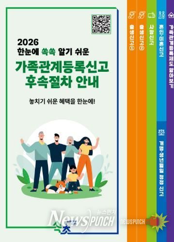 뉴스펀치 조평훈 기자 | 속초시는 가족관계등록신고 이후 필요한 각종 후속 행정절차를 시민들이 보다 쉽고 편리하게 이해하고 이행할 수 있도록 가족관계등록신고 후속절차 안내 리플릿을 제작해 시청 종합민원실과 8개 동 주민센터에 배포한다.
