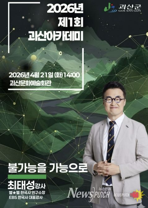 뉴스펀치 이현승 기자 | 충북 괴산군은 군민의 문화의식 함양과 평생학습 진흥을 위해 오는 21일 오후 2시에 괴산문화예술회관에서 2026년 제1회 괴산아카데미를 개최한다고 밝혔다.