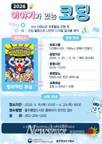 뉴스펀치 김윤걸 기자 | 울주천상도서관이 오는 25일부터 초등학생을 대상으로 책과 코딩활동을 연계한 융합프로그램 ‘이야기가 있는 코딩’을 운영한다고 15일 밝혔다.