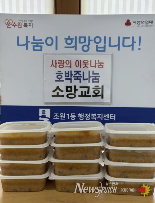 뉴스펀치 박상훈 기자 | 수원시 장안구 조원1동 지역사회보장협의체와 2025년 7월 업무협약을 맺은 소망교회가 지난 14일, 조원1동 관내 취약계층 20명을 위해 호박죽을 지원했다.
