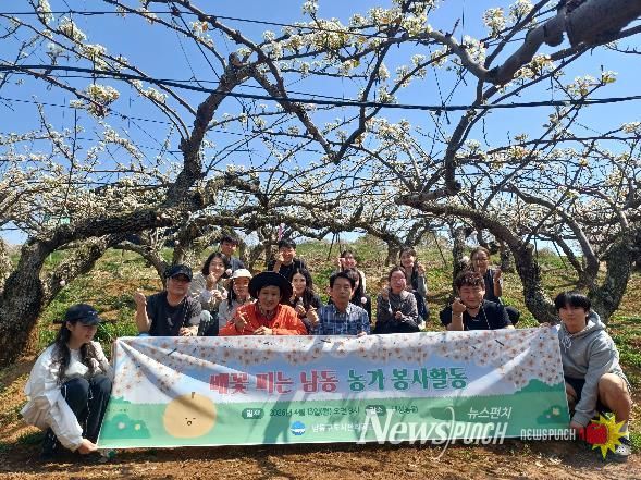 뉴스펀치 정홍균 기자 | 인천시 남동구도시관리공단은 최근 남동구 관내 과수 농가(대성 배 농원)를 방문해 일손을 돕는 ‘2026년 배꽃 피는 남동, 농가 봉사활동’을 실시했다고 15일 밝혔다.