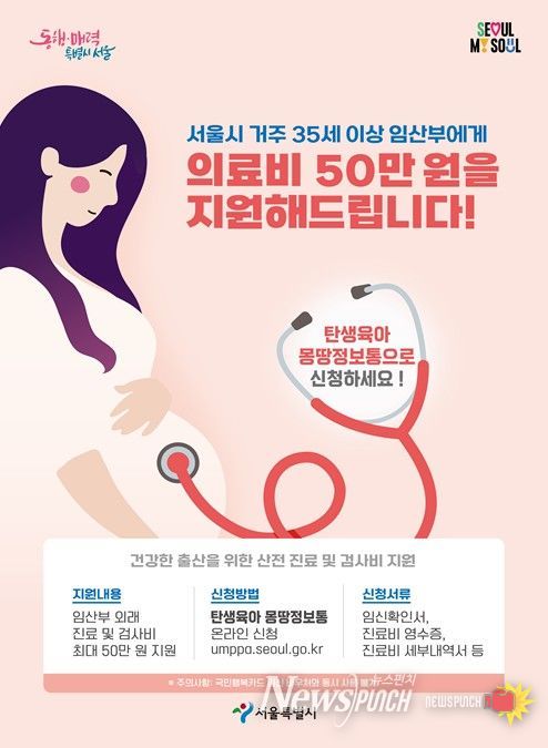 뉴스펀치 박상훈 기자 | 고령 출산 증가로 임신‧출산 의료비 부담이 커지는 가운데, 서울시에 거주 하는 35세 이상 임산부라면 임신 기간 동안 발생한 외래 진료 및 검사비 를 최대 50만 원까지 지원받을 수 있다.