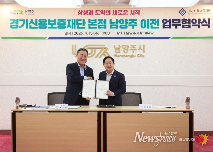 뉴스펀치 박상훈 기자 | 남양주시는 15일 시청 여유당에서 경기신용보증재단과 본점 이전을 위한 업무협약을 체결했다고 밝혔다.