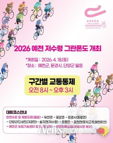 뉴스펀치 박세훈 기자 | 예천군은 오는 18일 오전 8시부터 오후 3시까지 예천군과 문경시, 단양군 일원에서 '2026 예천 저수령 그란폰도' 대회를 개최한다고 밝혔다.