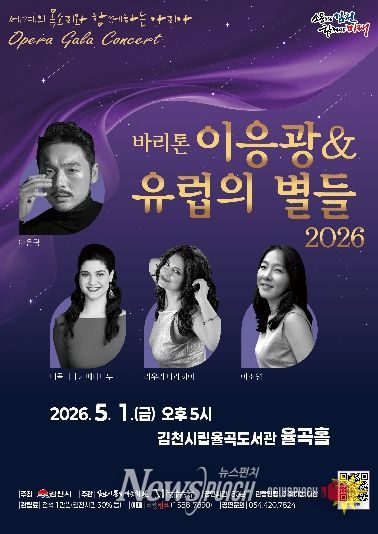 뉴스펀치 박세훈 기자 | 김천시 문화예술회관은 오는 5월 1일 오후 5시 율곡도서관 율곡홀에서 오페라 갈라 콘서트 '바리톤 이응광 & 유럽의 별들 2026'를 개최한다.
