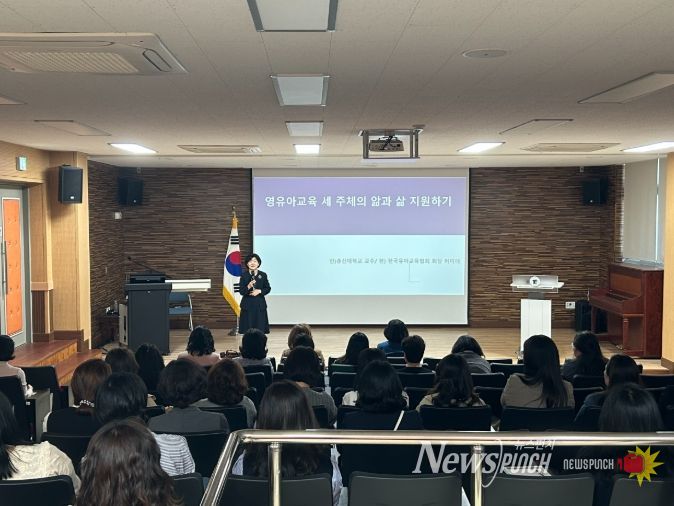 연수에서는 허미애 한국유아교육협회 회장이 '영유아 교사의 앎과 삶'과 '놀이 중심 교육과정에서의 놀이 지원'을 주제로 특강을 진행해 현장의 이해를 높이고 실질적인 지원 방안을 공유했다.